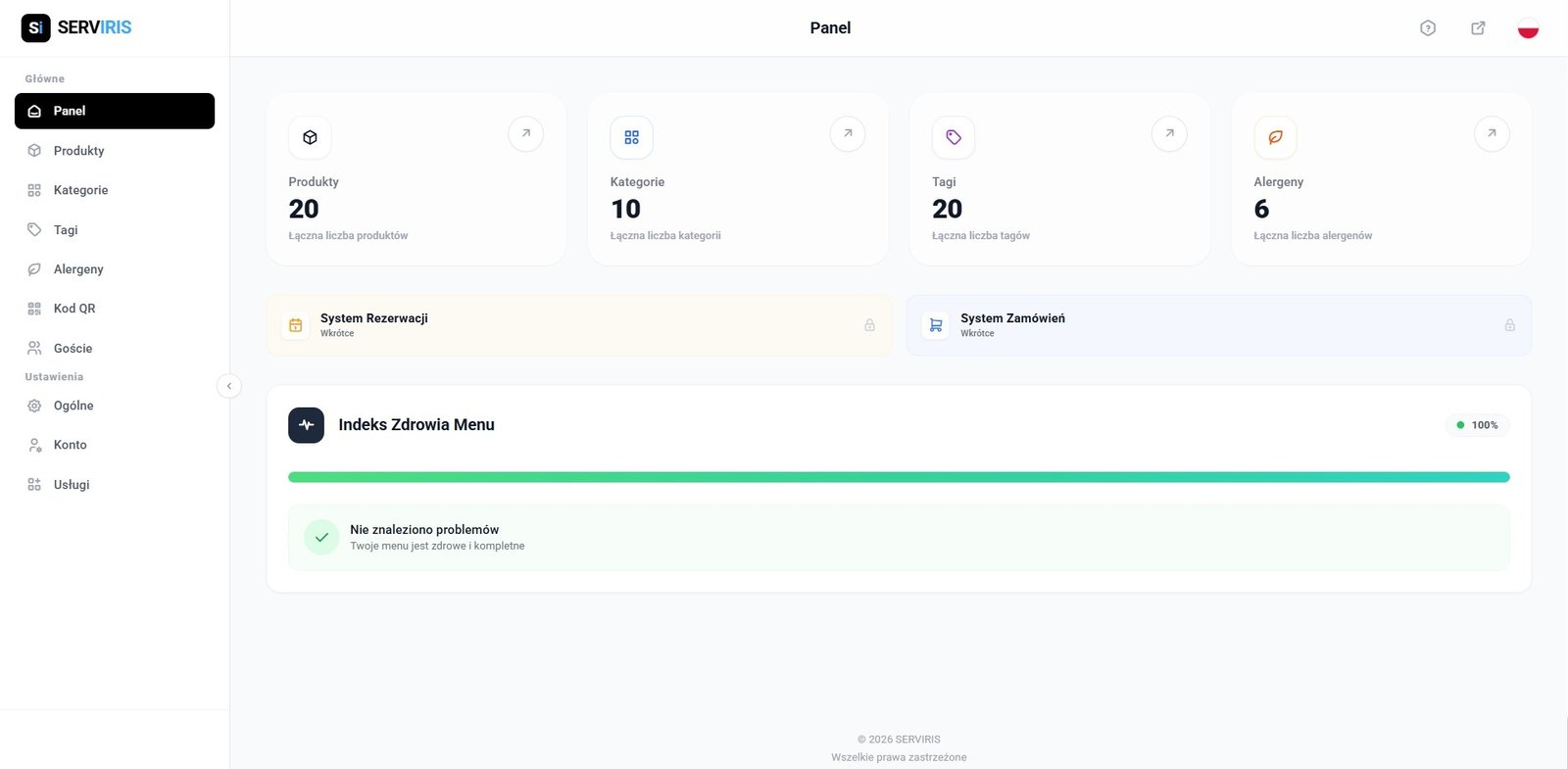 Zarządzaj produktami, kategoriami, tagami, alergenami i cenami z jednego miejsca. Zmiany w czasie rzeczywistym.